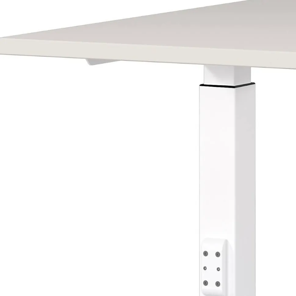 - Weiß pulverbeschichtetes Gestell in T-Form mit nivellierbaren Kunststoff Bodengleitern