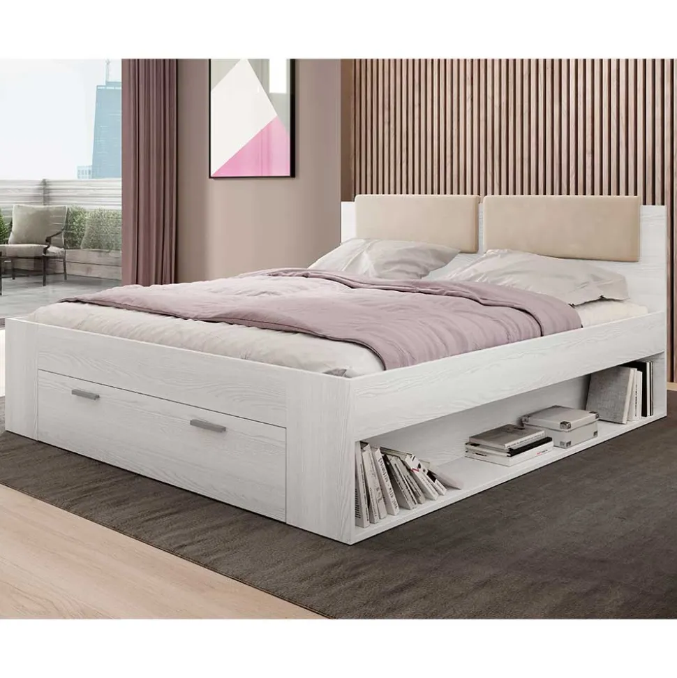 - Optimales Doppelbett in Esche weiß