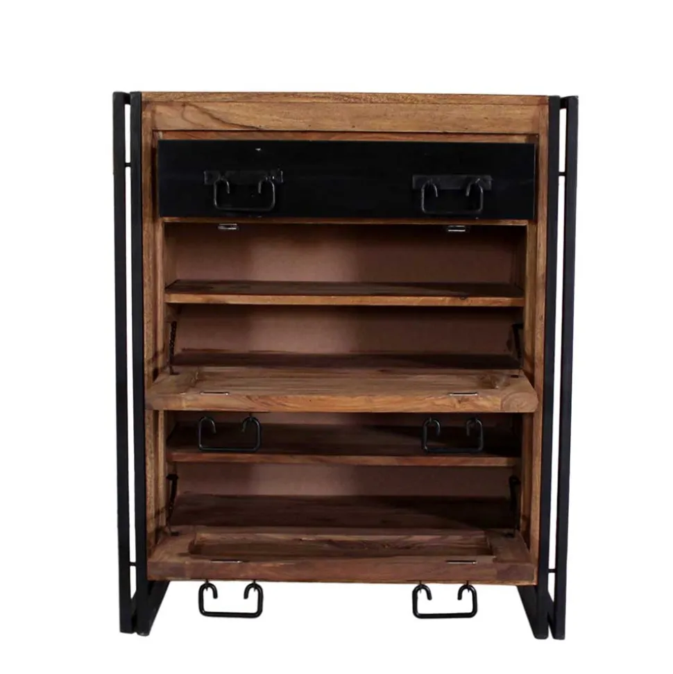 Schuh Klappenschrank Mendoza aus Akazie Massivholz