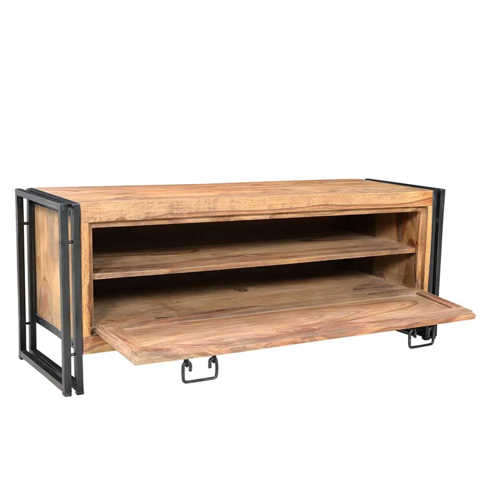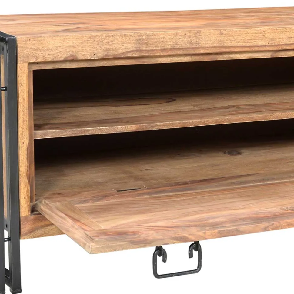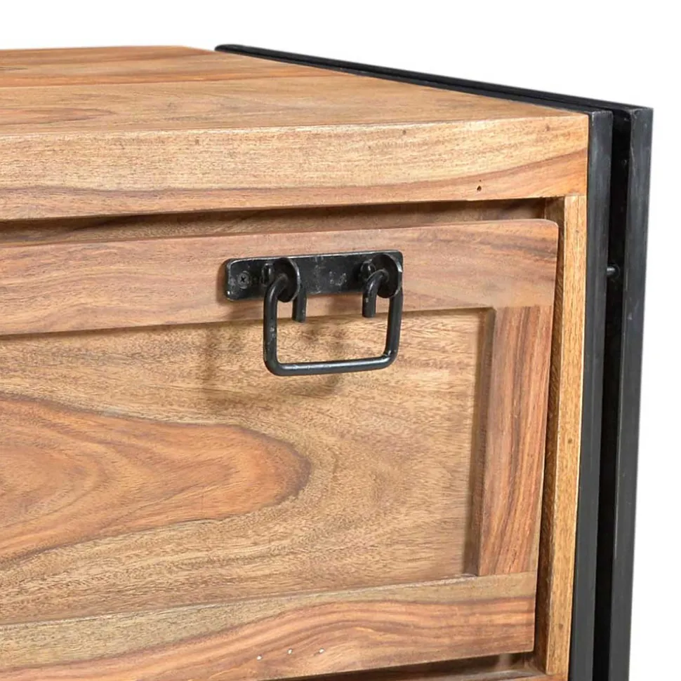 Aus massivem Akazienholz gefertigt, überzeugt diese Kommode durch ihre Robustheit und Langlebigkeit. Akazienholz ist nicht nur nachhaltig, sondern besticht auch durch seine beeindruckende Widerstandsfähigkeit gegenüber Umwelteinflüssen. Gepaart mit dem stabilen Metall des offenen Bügelgestells bietet dieses Möbelstück eine beeindruckende Mischung aus Festigkeit und Ästhetik.