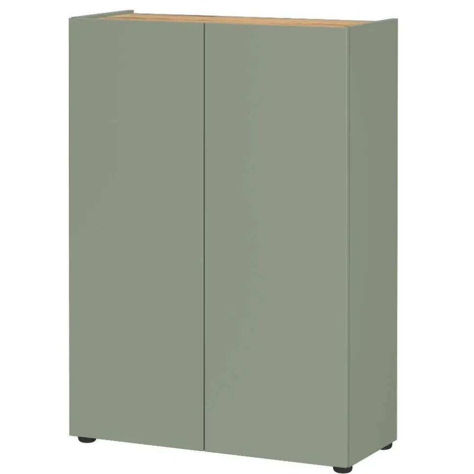 - Trendiger Schuhschrank in Graugrün und Eichefarben