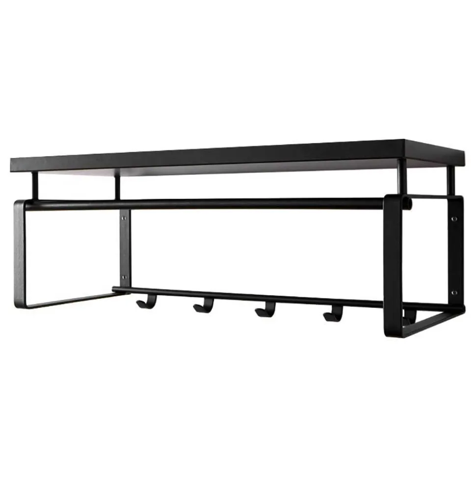 - Ausgestattet mit fünf gebogenen Kleiderhaken, zudem bieten zwei Stangen seitlich und eine Stange unterhalb der Hutablage Platz für Kleiderbügel