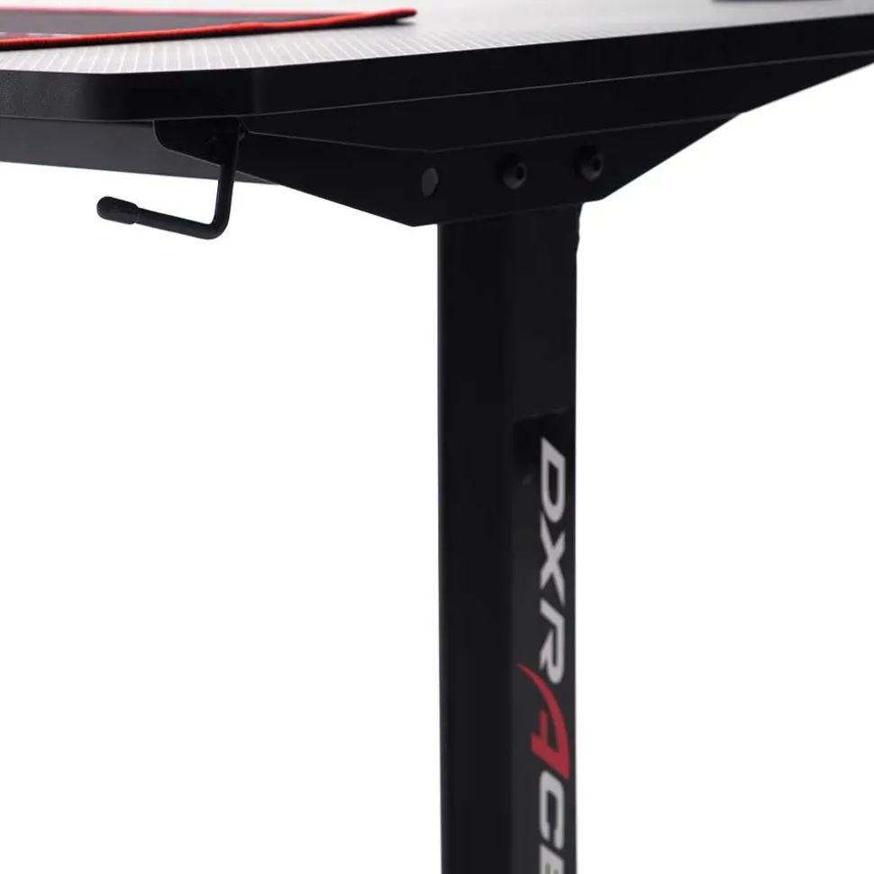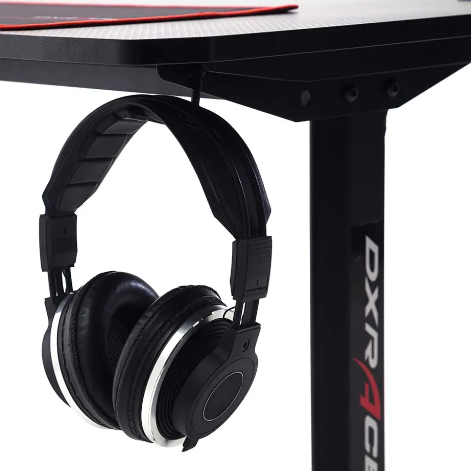 Der Schreibtisch bietet nicht nur eine praktische Arbeitsfläche, sondern auch einige zusätzliche Features. Die Tischplatte verfügt über ein kleines Mousepad für eine angenehme Steuerung des Computers. Zudem ist der Schreibtisch mit einer Halterung für das Headset sowie einem Getränkehalter ausgestattet. Um für Ordnung beim Spielen oder Arbeiten zu sorgen, befinden sich zwei Kabeldurchlässe in der Tischplatte sowie ein Kabelnetz an der Rückseite des Gaming-Desks.