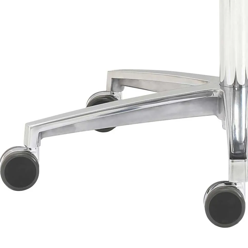 Ein solider Stand ist genauso wichtig wie Flexibilität. Das polierte Aluminium-Sterngestell bietet maximale Stabilität und hält einer Belastung von bis zu 150 kg problemlos stand. Fünf robuste Kunststoff-Universalrollen ermöglichen leichtgängige Bewegungen auf allen gängigen Bodenbelägen – sei es Teppich, Parkett oder Fliesen. So gleiten Sie mühelos von einem Arbeitsplatz zum nächsten.