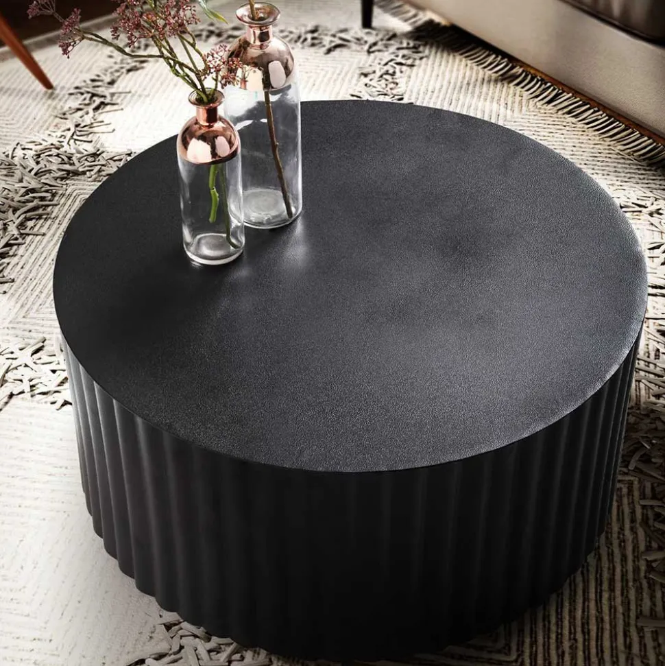 Der „Crocetta“ Couchtisch besteht aus robustem und langlebigem Metall, das für seine Widerstandsfähigkeit und Stabilität bekannt ist. Die Tischplatte hat eine Materialstärke von 0,5 cm und ist pulverbeschichtet, was sie besonders pflegeleicht macht. Das zylinderförmige Gestell, das auf einer breiten Basis steht, begeistert durch seine vertikalen Rillen und verleiht dem Tisch eine außergewöhnliche Optik.
