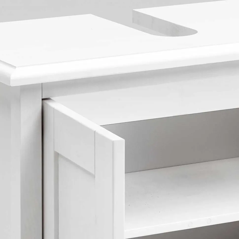 Gefertigt aus massivem Kiefernholz überzeugt Satumare nicht nur optisch, sondern auch durch Qualität und Beständigkeit. Kiefernholz ist bekannt für seine Robustheit, sein geringes Gewicht und seine warme Ausstrahlung. Es arbeitet mit der Zeit und entwickelt so eine Patina, die dem Möbelstück zusätzlichen Charme verleiht. Die weiße Lackierung sorgt dabei für ein frisches, helles Ambiente, das sich problemlos mit bestehenden Möbeln kombinieren lässt.