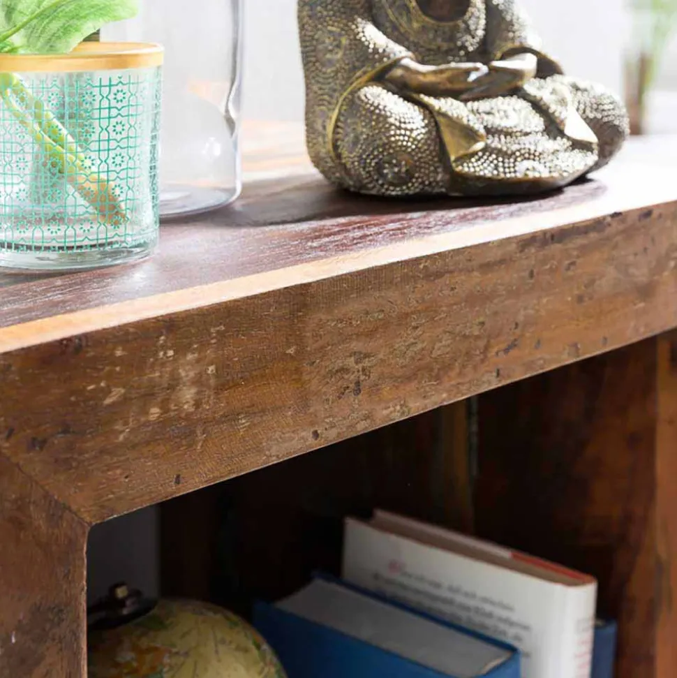 Shabby Chic verbindet den Charme vergangener Zeiten mit moderner Ästhetik. Der Ablagetisch Dencig begeistert mit seiner rustikalen Ausstrahlung, die durch bunte Farbreste und Gebrauchsspuren eine lebendige Geschichte erzählt. Dieser Stil verleiht Ihrem Zuhause Wärme und Charakter und lässt sich hervorragend mit verschiedenen Einrichtungsstilen kombinieren.