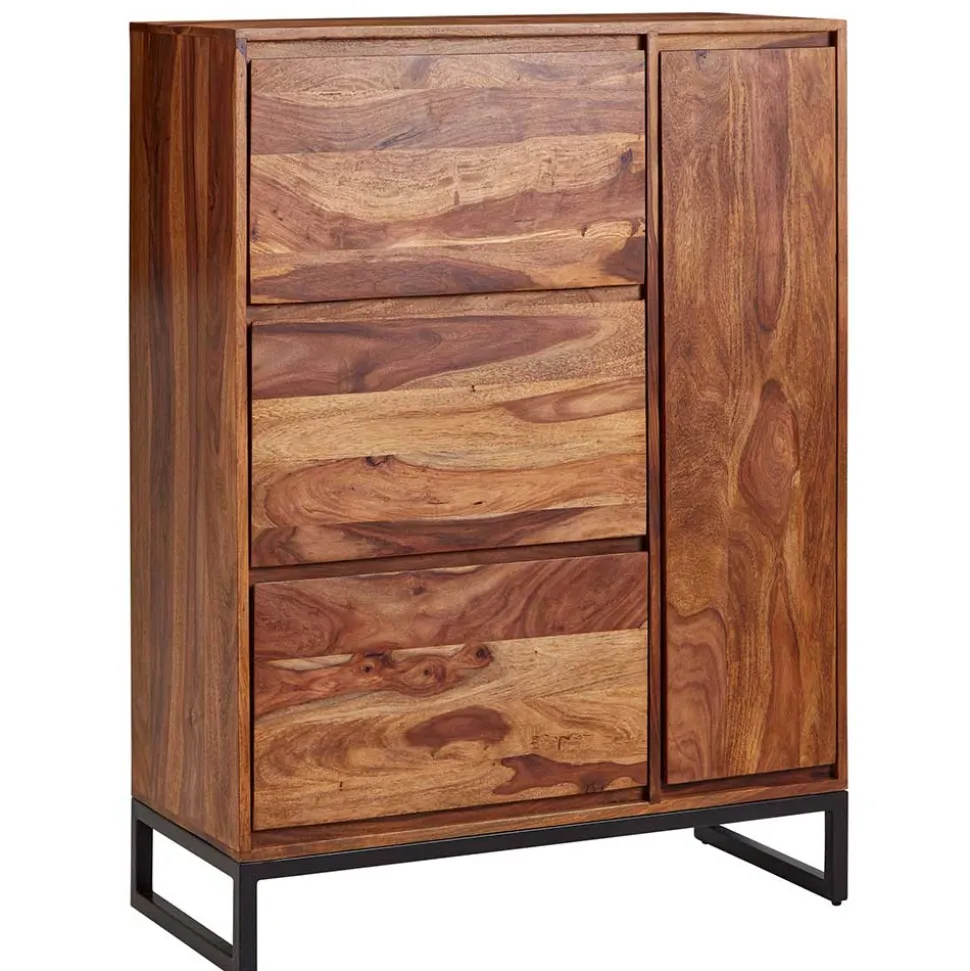 Unser Schuhschrank „Elmin“ wird aus massivem Sheeshamholz und robustem Metall gefertigt. Sheeshamholz zeichnet sich nicht nur durch seine beeindruckende Härte und Stabilität aus, sondern auch durch seine natürliche Schönheit. Die Holzoberflächen sind sorgfältig lackiert, um die lebhafte Maserung zu betonen und gleichzeitig vor Verschleiß zu schützen. Das Ergebnis ist ein Möbelstück, das nicht nur lange hält, sondern auch eine zeitlose Eleganz ausstrahlt.
