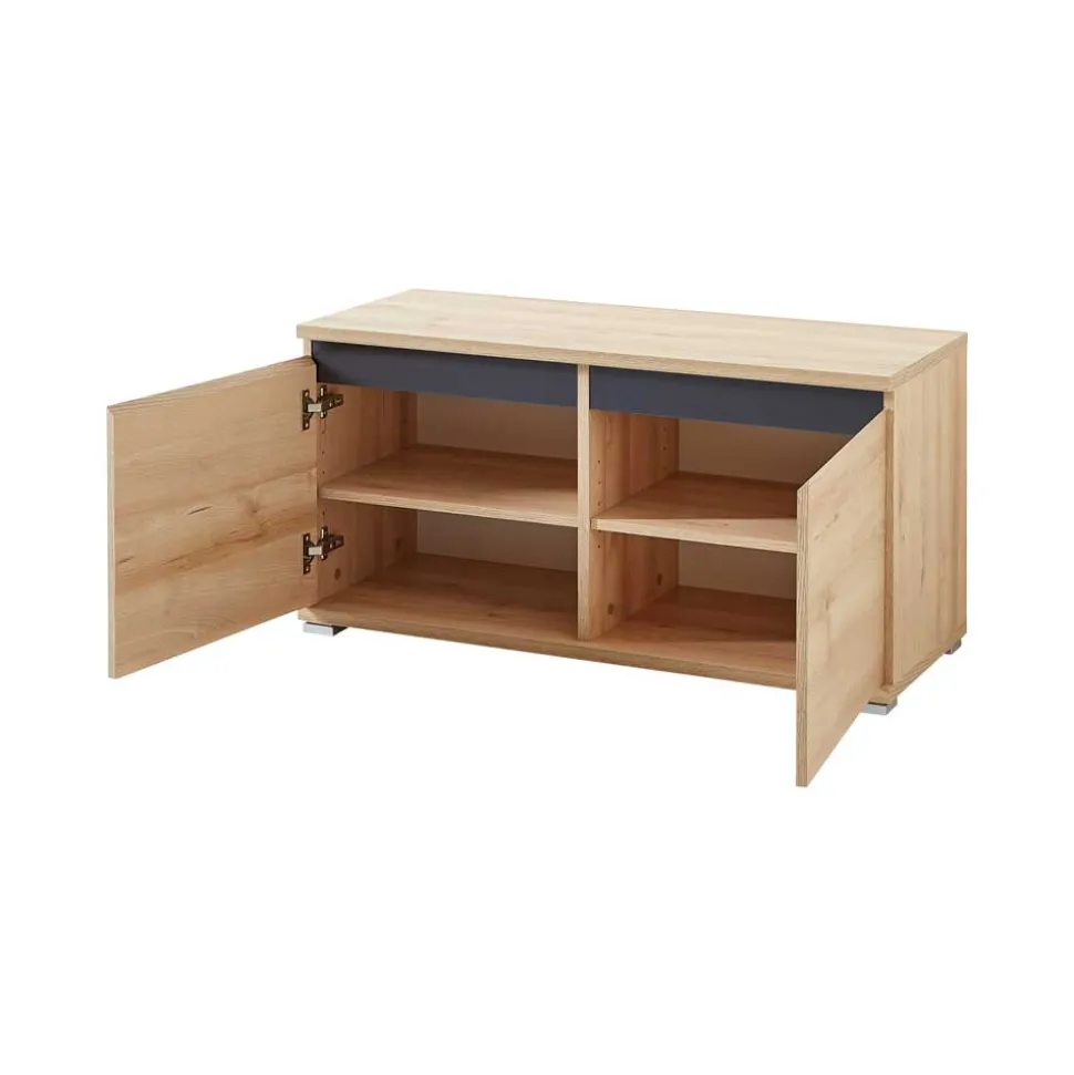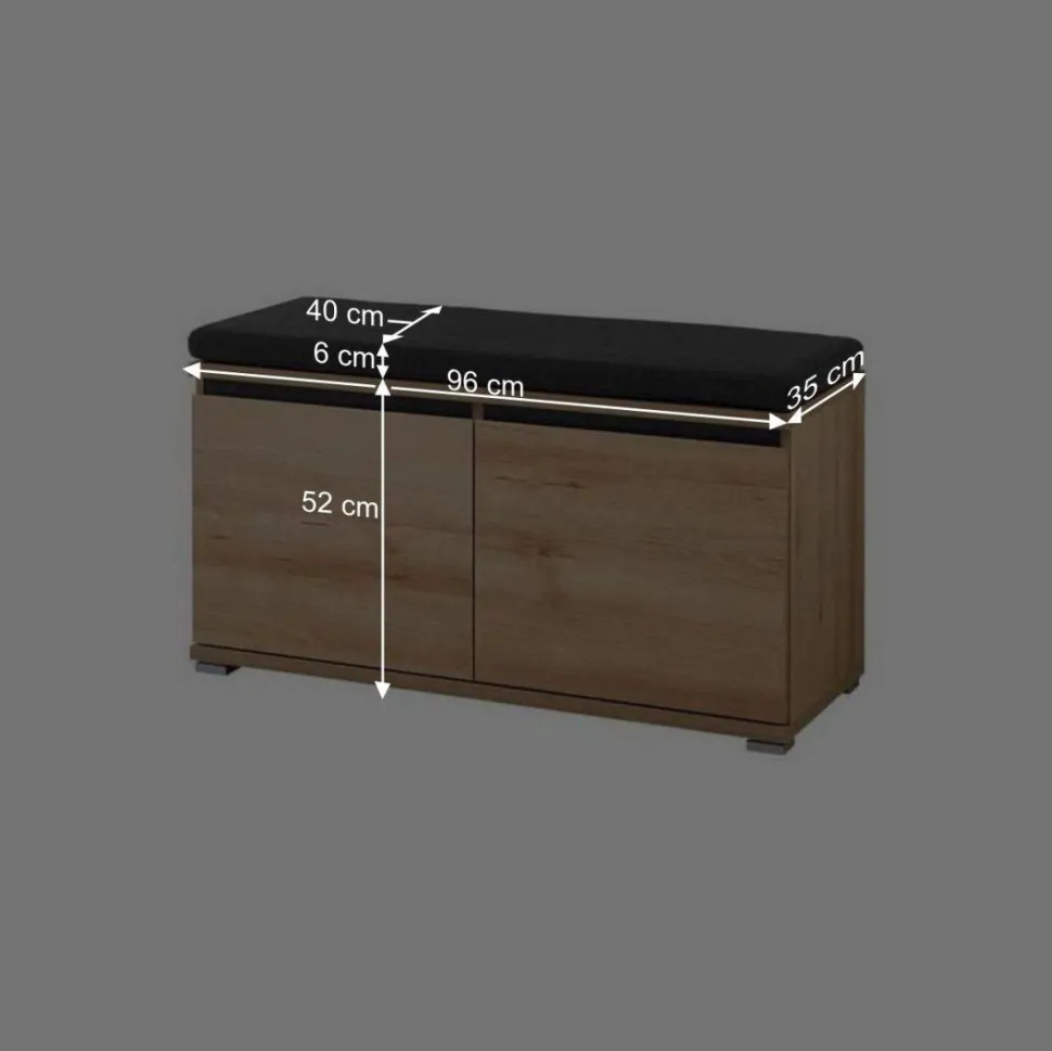 Mit ihren Maßen von 96 cm Breite, 49 cm Höhe und 40 cm Tiefe bietet „Curelino“ ausreichend Platz für bis zu acht Paar Schuhe. Zwei Türen mit dezenten Griffmulden und einem Einlegeboden sorgen für eine ordentliche Aufbewahrung und eine Belastbarkeit von bis zu 10 kg pro Boden. Die stabile Qualität wird durch hochwertige Metallbeschläge und stoßfeste ABS-Kanten unterstrichen, die für zusätzliche Langlebigkeit sorgen.