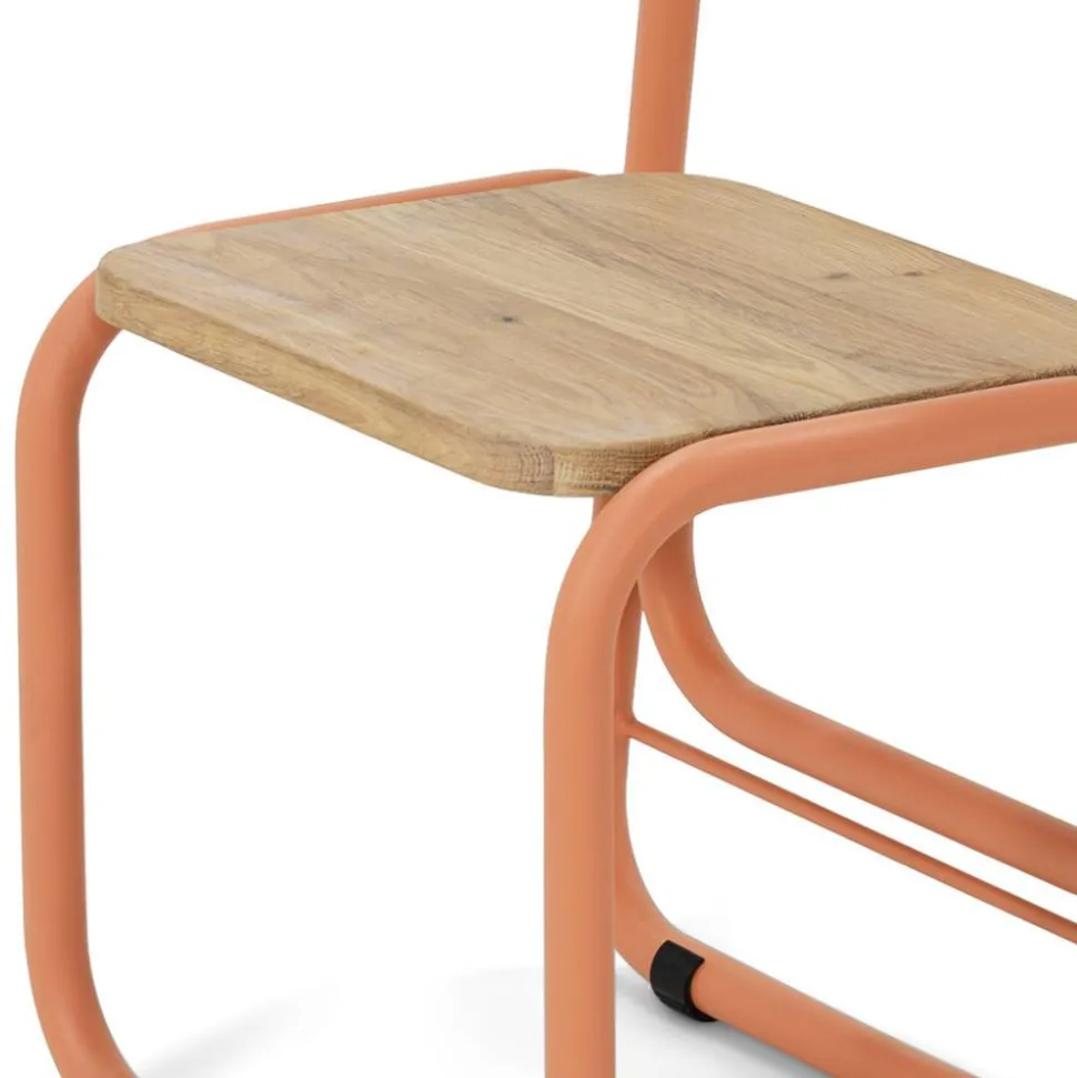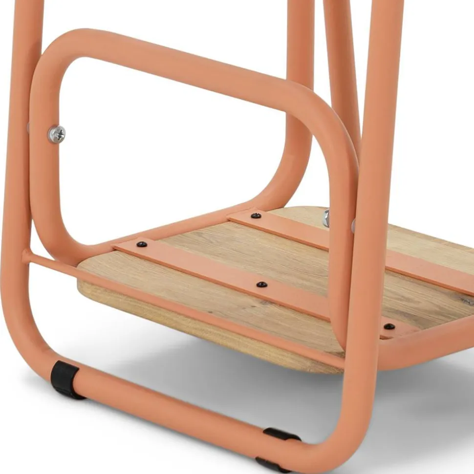 - Das Gestell aus Stahl ist in Terracotta gehalten und besteht aus Metallbügeln