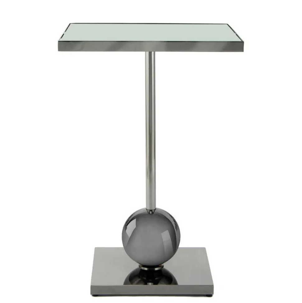 Der Beistelltisch „Mandarino“ ist aus hochwertigem Spiegelglas und Edelstahl gefertigt – zwei Materialien, die nicht nur für ihre Schönheit, sondern auch für ihre Langlebigkeit bekannt sind. Die quadratische Tischplatte aus Spiegelglas ist von einer eleganten Metall-Einfassung umgeben und bietet ausreichend Platz für Ihre Dekorationen oder Getränke. Das ausgefallene Edelstahl-Säulengestell in Dunkelgrau wird von einer quadratischen Bodenplatte gestützt und verleiht dem Tisch seine markante, stilvolle Form. Ein kugelförmiges Dekor-Element setzt zusätzlich einen aufregenden Akzent und rundet das Design perfekt ab.