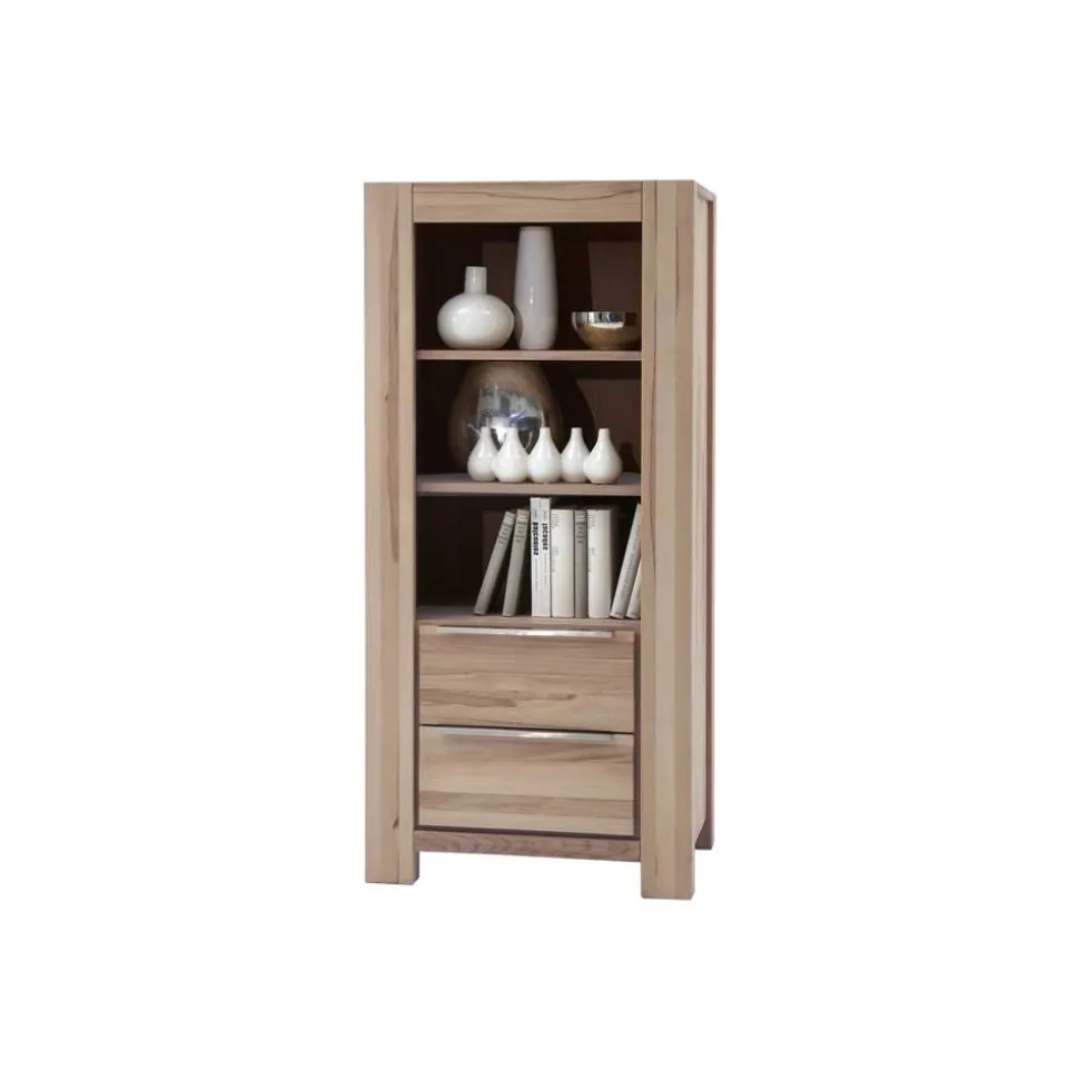 Funktionalität trifft auf Design – mit großzügigem Stauraum in durchdachter Aufteilung. Drei offene Fächer bieten Platz für Bücher, dekorative Elemente oder Alltagsgegenstände, die griffbereit sein sollen. Die beiden massiven Holzböden sorgen für eine stabile Einteilung und lassen sich vielseitig nutzen. Ergänzt wird die praktische Aufbewahrung durch zwei geräumige Schubkästen auf hochwertigen Metallschienen. Diese lassen sich sanft und mühelos ausziehen und bieten viel Platz für Unterlagen, Wohnaccessoires oder persönliche Gegenstände.