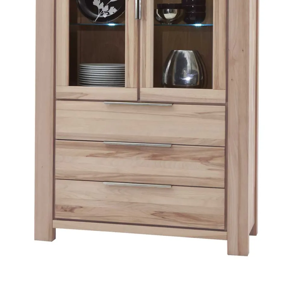 Unsere Standvitrine „Thivios“ vereint zeitlose Eleganz mit höchster Verarbeitungsqualität. Gefertigt aus massivem Wildeichenholz, besticht dieses Möbelstück durch seine robuste Struktur und die einzigartige Maserung des Holzes. Wildeiche zeichnet sich durch ihre außergewöhnliche Härte und Widerstandsfähigkeit aus, wodurch sie besonders langlebig und pflegeleicht ist. Gleichzeitig sorgt die natürliche Farbgebung für eine warme und einladende Atmosphäre in Ihrem Zuhause.