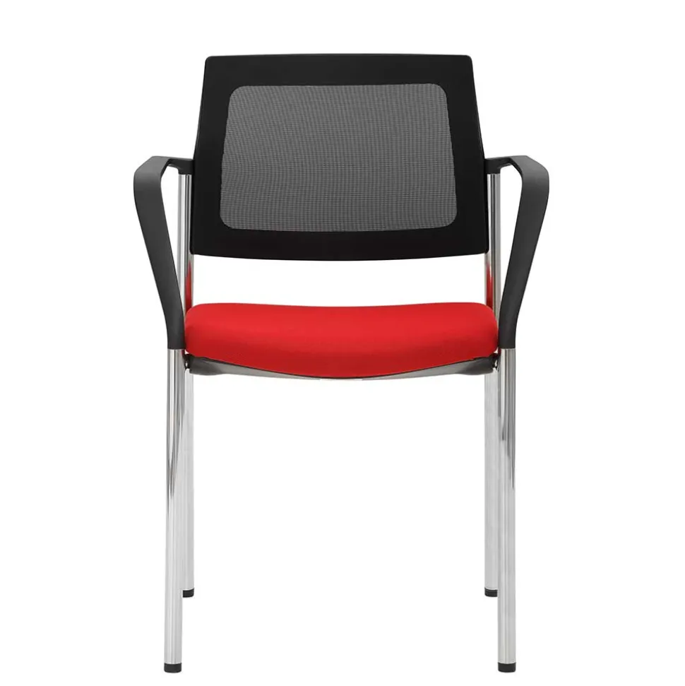 - Solider Stapelstuhl in Schwarz, Rot und Chromfarben