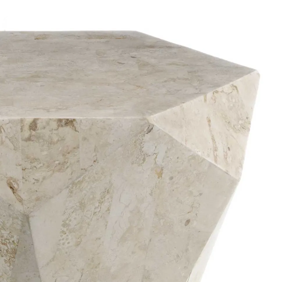 Bei der Fertigung des Couchtisches „Jevellon“ setzen wir auf die Kombination aus Stabilität und Schönheit. Das Gestell, gefertigt aus stabil verleimtem Sperrholz, bildet die solide Basis dieses Kunstwerks. Doch der wahre Hingucker ist der cremefarbene Fossilstein, der in akribischer Handarbeit geschliffen und in Mosaik-Optik am Gestell befestigt wird. Jedes Stück ist ein Unikat, dessen individuelle Marmorierung und glatte, versiegelte Oberfläche für eine sehr exklusive Wirkung sorgen.