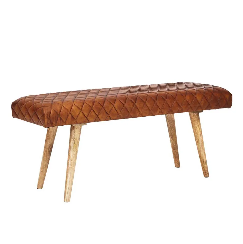 - Klasse Sitzbank in Cognac Braun und Mangoholz Naturfarben