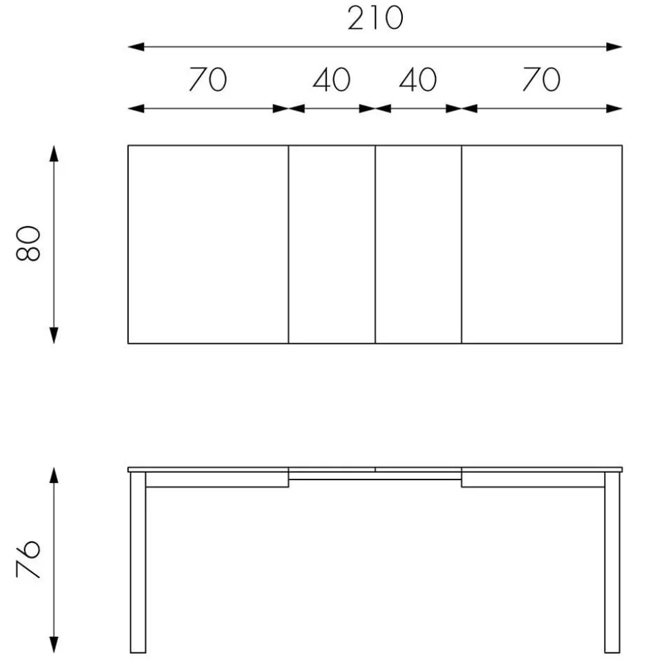 - Verlängerbar um je 40 cm, von 130 bis auf 210 cm