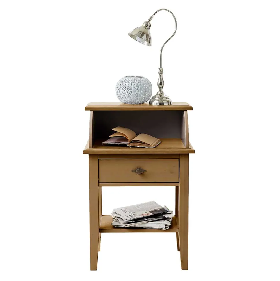 Gefertigt aus massivem Kiefernholz, verspricht der Telefontisch nicht nur eine beeindruckende Optik, sondern auch höchste Stabilität und Langlebigkeit. Kiefernholz ist bekannt für seine Robustheit und seine attraktive, deutlich sichtbare Maserung, die jedem Möbelstück einen individuellen Charakter verleiht. Ergänzt wird das massive Kiefernholz durch Sperrholzelemente an den Seiten und Böden der Schubladen sowie der Möbelrückwand.