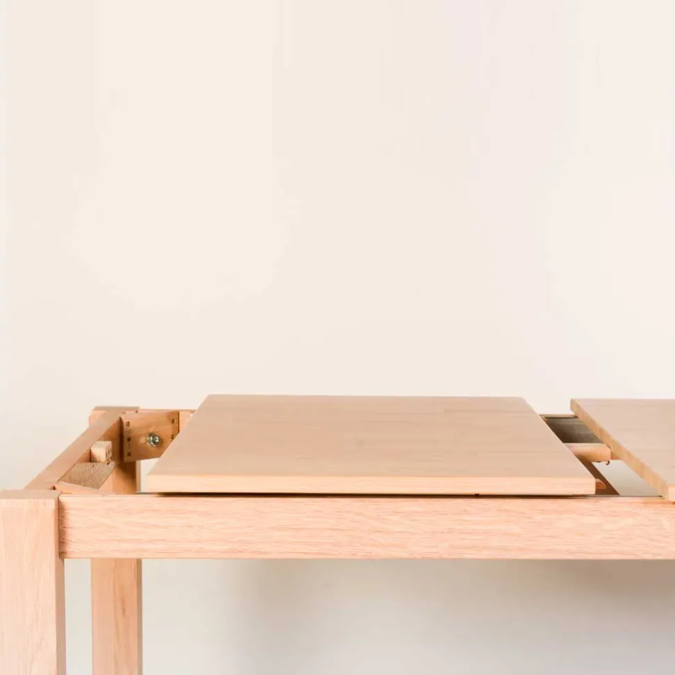 Mit seinem Front-Kulissenauszug ist der Tisch ohne großen Aufwand verlängerbar, indem Sie spielend einfach eine oder zwei Einlegeplatten von je 50 cm Breite hinzufügen (je nach gewählter Breite).