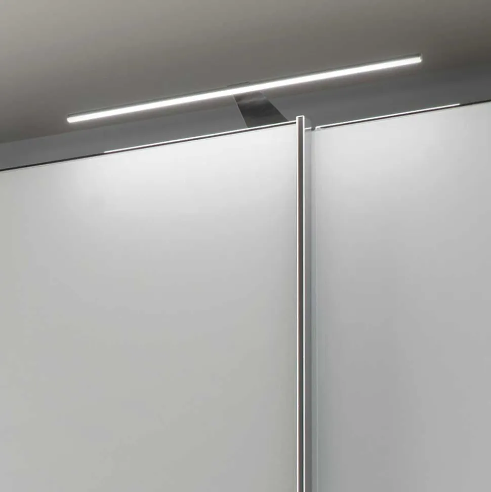 - Mit aufgesetztem Wandpaneel inklusive Rauchglasboden und sparsamer LED Touch Beleuchtung