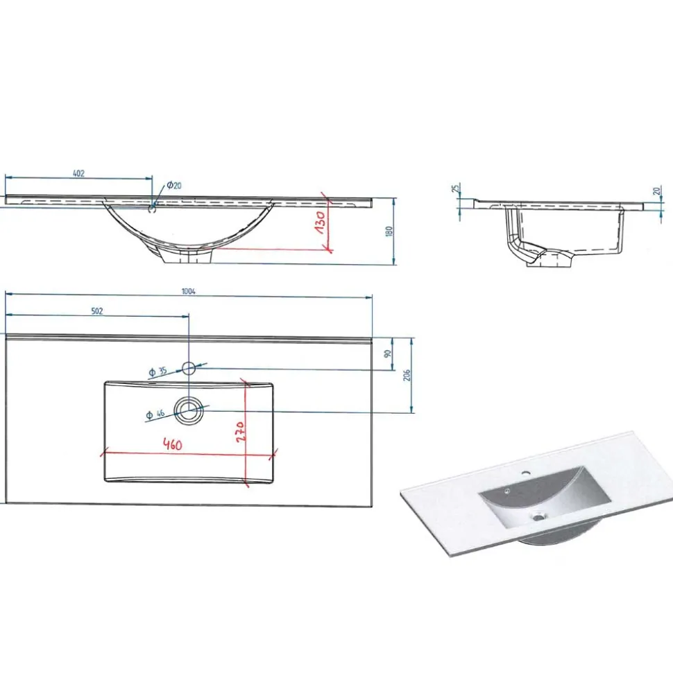 Das weiße Mineralgussbecken überzeugt nicht nur optisch, sondern auch durch seine Pflegeleichtigkeit und angenehme Haptik. Es ist bereits perfekt auf den Waschtisch abgestimmt und verfügt über vorgefertigte Löcher zur schnellen und einfachen Montage einer Armatur Ihrer Wahl. Bitte beachten Sie, dass die Lieferung ohne Armatur erfolgt – so können Sie Ihr Wunschmodell ganz individuell ergänzen.
