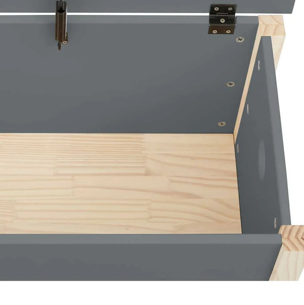 Die Truhe „Bradley“ ist teilmassiv aus MDF-Platten und Kiefernholz gefertigt und besticht durch ihre langlebigen und pflegeleichten Oberflächen. Der flache Deckel ist mit stabilen Metallscharnieren ausgestattet und steht leicht über, sodass er sich mühelos hochklappen lässt. An den Seiten sorgen rund ausgefräste Grifflöcher für einen einfachen Transport und ein vereinfachtes Tragen – ideal für flexible Nutzung.