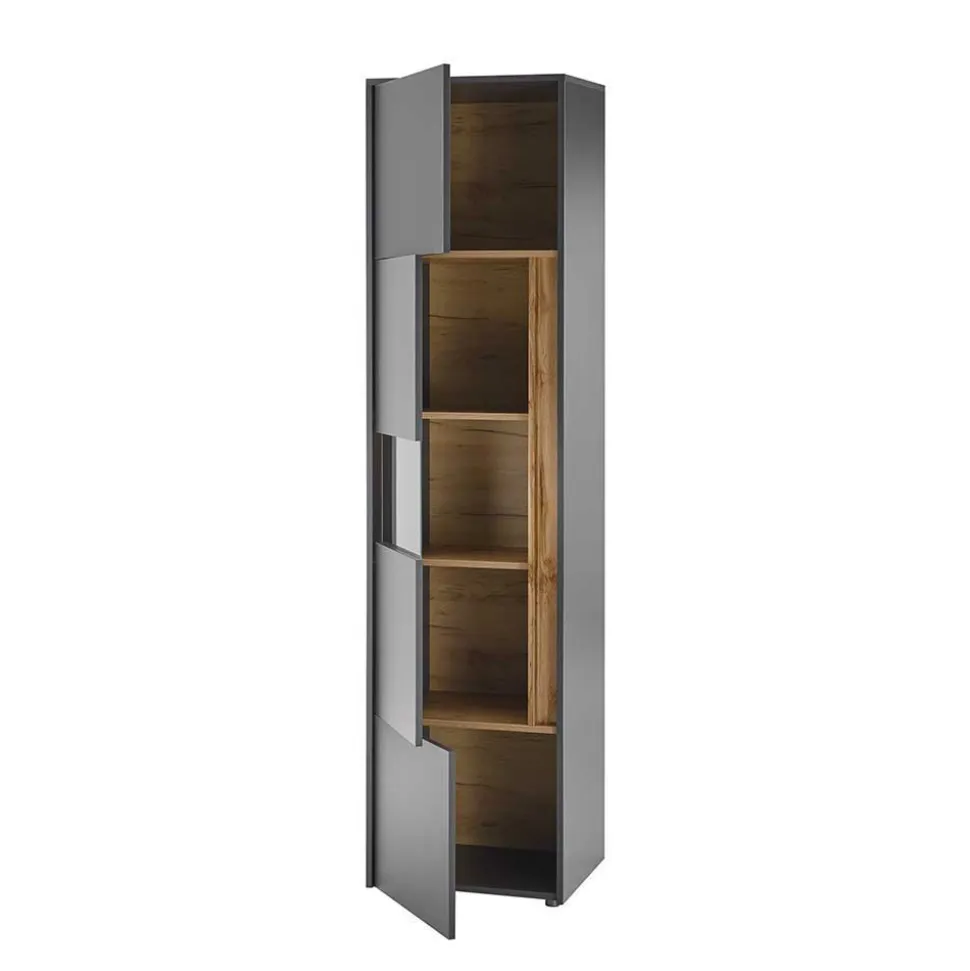 - Hervorragende Wohnwand in Anthrazit und Wildeichefarben