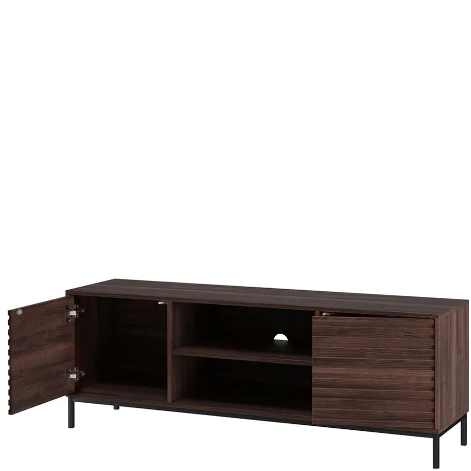 Mit einer Breite von 140 cm, einer Höhe von 50 cm und einer Tiefe von 40 cm bietet der TV-Unterschrank ausreichend Stellfläche für moderne TV-Geräte und Zubehör, ohne dabei sperrig zu wirken. Die dekorativ gerillten Türfronten verleihen dem Möbelstück zusätzliche Raffinesse und setzen stilvolle Akzente.