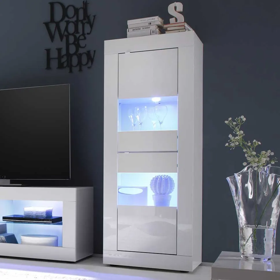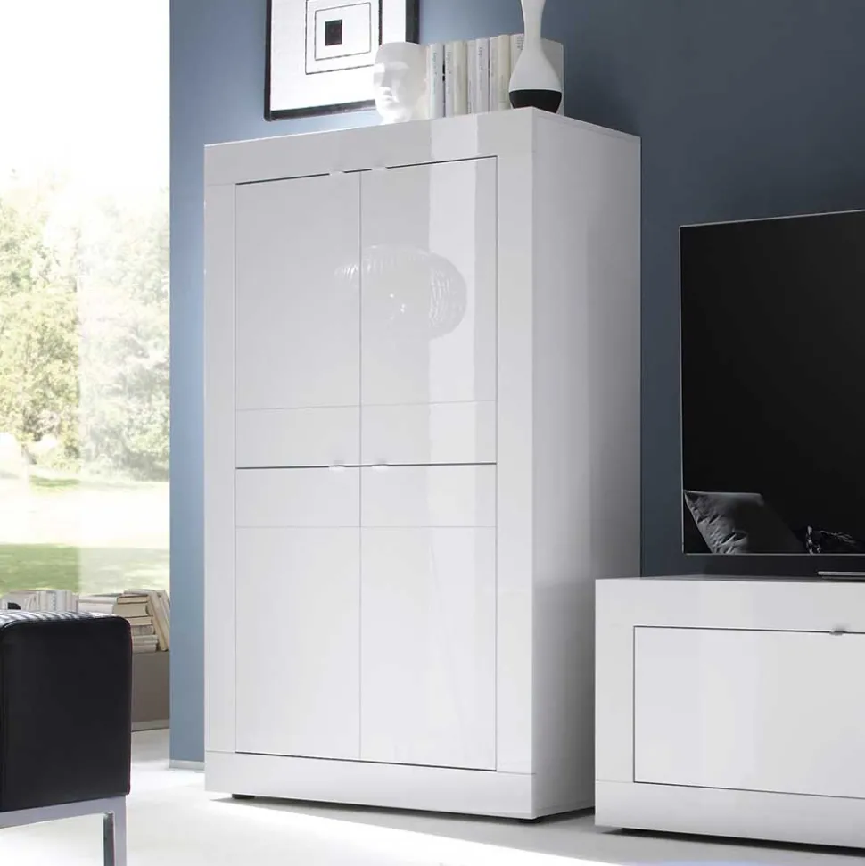 Das brillante Hochglanz-Finish sorgt für einen anspruchsvollen Look, der sofort ins Auge fällt, während die eleganten Metallgriffe einen schönen Kontrast zur makellosen weißen Oberfläche bilden. Die ansprechende Rahmenoptik ergänzt das Gesamtbild und verleiht jedem Möbelstück eine individuelle Note.