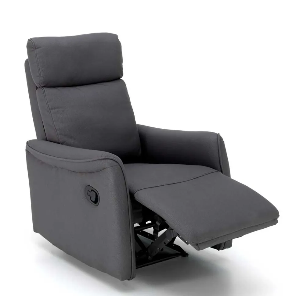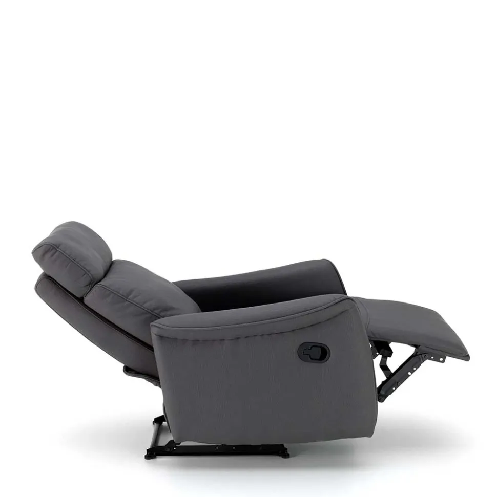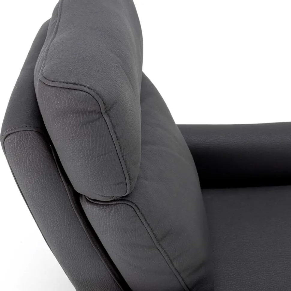 Der Sessel steht sicher und stabil auf einem robusten Untergestell aus Metall und Holz, das eine maximale Belastbarkeit von 130 kg bietet. Ummantelt von edlem, anthrazitfarbenem Kunstleder, fügt sich der „Zalona“ nahtlos in jedes Raumkonzept ein. Dieses Material ist nicht nur ein Blickfang, sondern auch ein Wunder der Pflegeleichtigkeit – Flecken lassen sich im Handumdrehen entfernen, was den Sessel besonders alltagstauglich macht.
