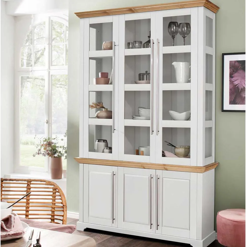 - Hervorragender Vitrinenschrank in Weiß und Kiefer Honigfarben