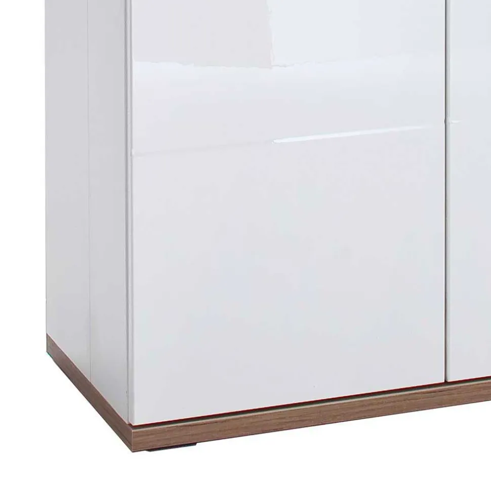 Die Vitrine „Icadro“ beeindruckt mit einem atemberaubenden zweifarbigen Design. Die Front, aus MDF gefertigt, erstrahlt in einem glänzenden Weiß, während der Korpus in mattem Weiß foliert ist. Die Absetzungen sowie die Deckplatte und der Sockel sind in einem Holzdekor Balkeneiche foliert, was nicht nur einen stilvollen Kontrast schafft, sondern auch eine warme und gemütliche Atmosphäre in Ihrem Raum schafft.