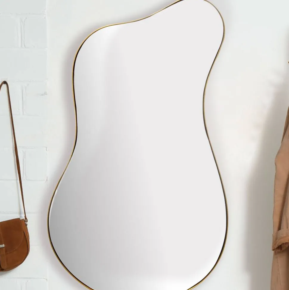Der Wandspiegel „Curedo“ ist ein echtes Meisterwerk, das in keinem Raum fehlen sollte. Mit seinem goldenen Metallrahmen und der harmonisch organischen Form zieht er alle Blicke auf sich und wird zum echten Highlight in Ihrem Zuhause. Ob im Flur, im Wohnzimmer oder im Schlafzimmer – dieser Spiegel verleiht jedem Raum eine besondere Note und sorgt für eine stilvolle Atmosphäre. Die Wandmontage des Spiegels lässt sich schnell und unkompliziert realisieren, sodass Sie ihn direkt nach der Lieferung genießen können.