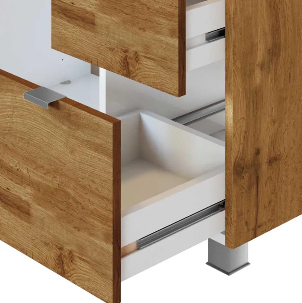 - Moderner Waschbeckenunterschrank in Wildeichefarben