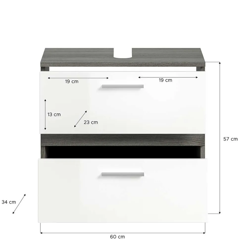 - Prima Waschbeckenunterschrank in Weiß und Rauchgrau