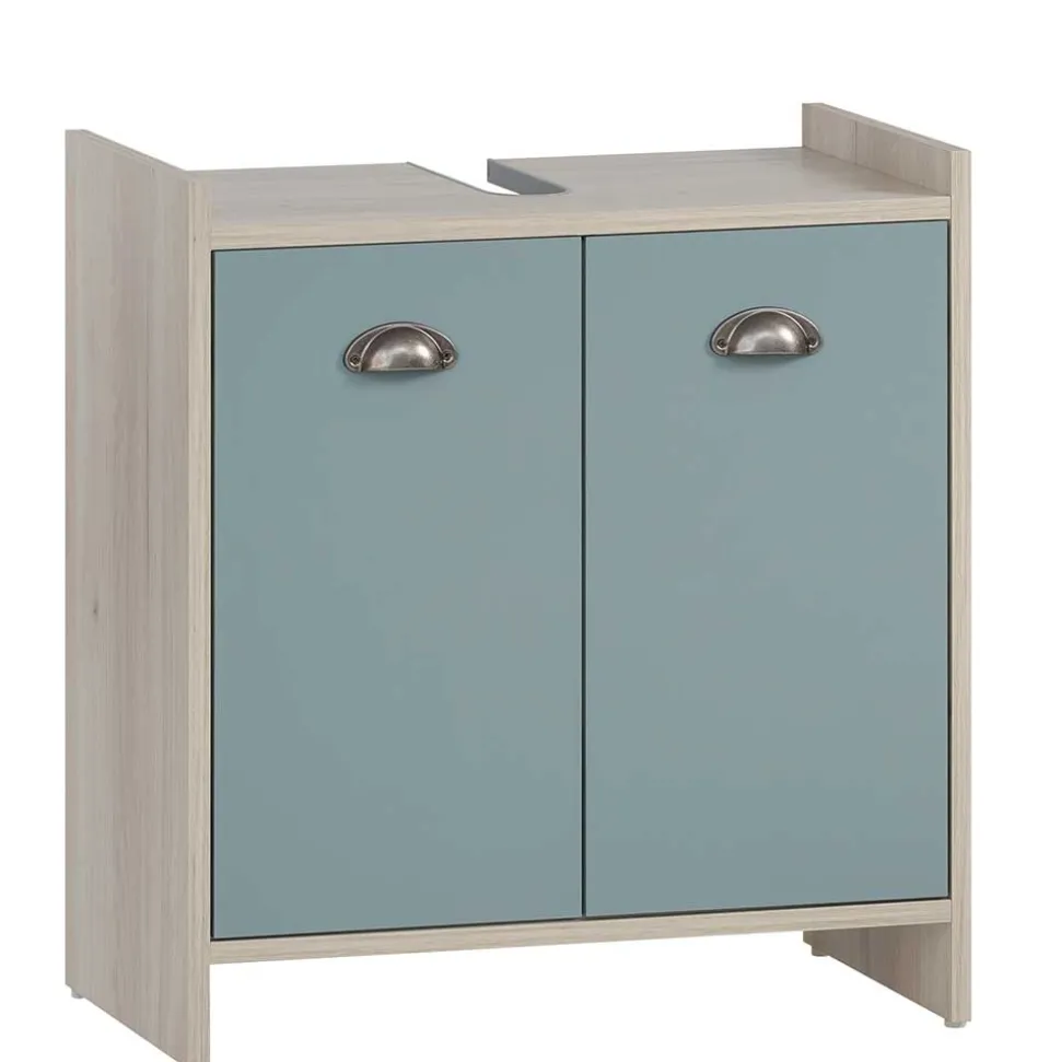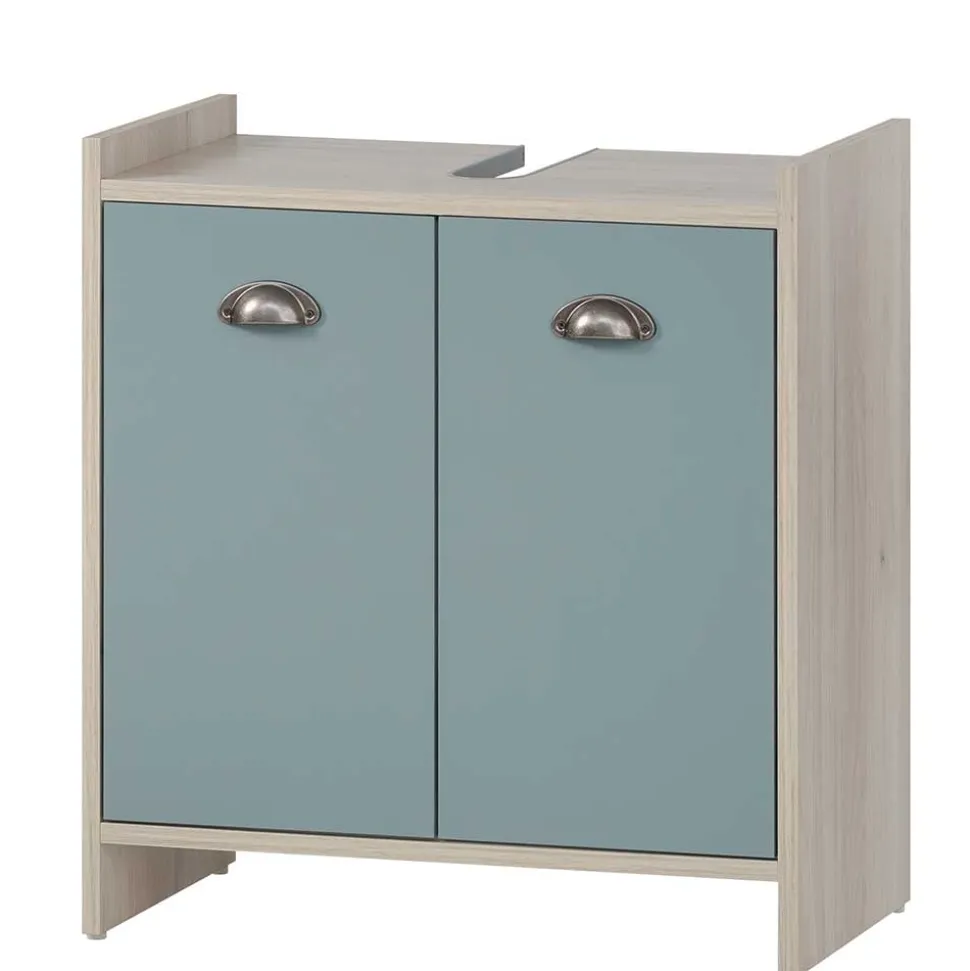 - Klasse Bad-Unterschrank in Hellblau und Eiche hell
