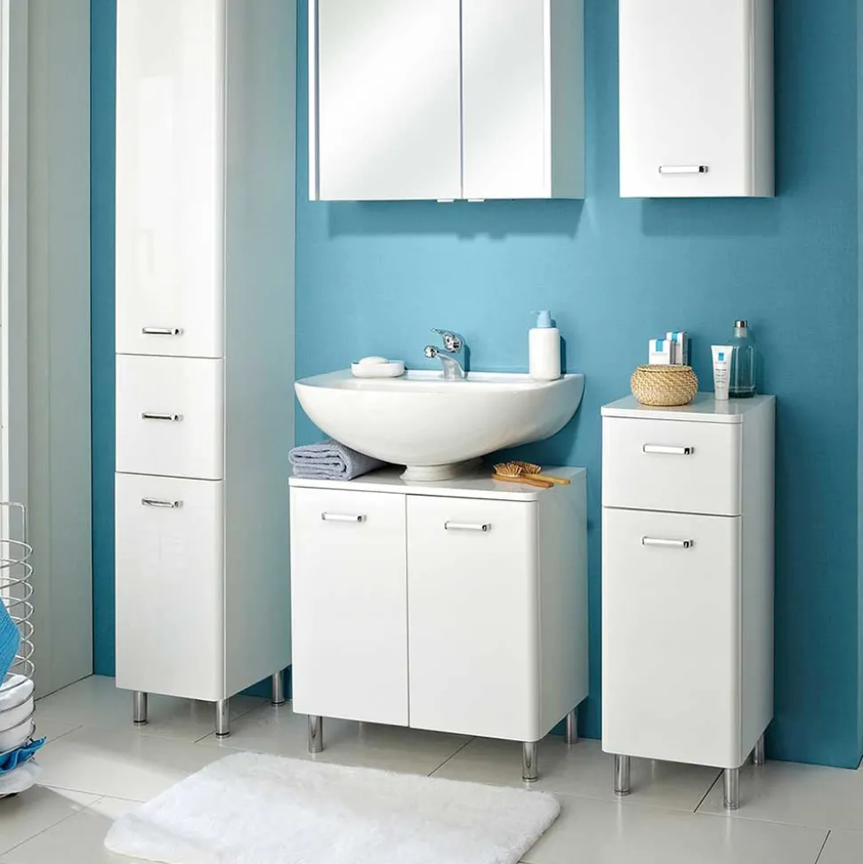 Der Waschbeckenschrank „Yennja“ ist die perfekte Lösung für ein praktisches und zugleich ansprechendes Badezimmer. Mit seinem klaren, minimalistisch gehaltenen Design passt er sich mühelos jeder Badezimmereinrichtung an und schafft eine einladende Atmosphäre. Die hochglänzende weiße Front strahlt Frische aus und lässt sich flexibel mit verschiedenen Farbkonzepten kombinieren. Die zurückhaltende Formensprache und die hochwertigen Materialien machen den Schrank zu einem langlebigen Begleiter für Ihr Badezimmer – gefertigt in Deutschland, steht er für überzeugende Qualität.
