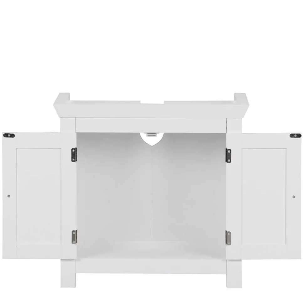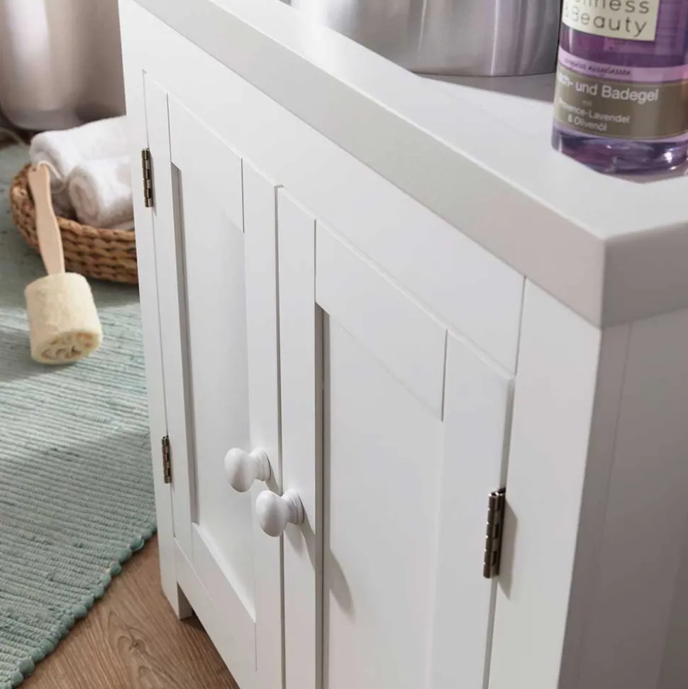 Waschbeckenunterschrank „Hank“ überzeugt auf ganzer Linie mit zeitloser Eleganz im beliebten Landhausstil. Dieses Design zeichnet sich durch warme, einladende Elemente aus, die einen Hauch von ländlichem Charme in Ihr Badezimmer bringen. Mit seiner strahlend weißen Farbgebung fügt sich „Hank“ harmonisch in jedes Badezimmer ein und schafft eine Atmosphäre von Ruhe und Klarheit.