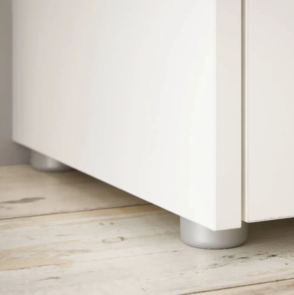 Der Waschbeckenunterschrank „Nonessia“ wird demontiert geliefert. Eine klar strukturierte Aufbauanleitung liegt bei und ermöglicht einen unkomplizierten Zusammenbau. Das Möbel steht auf flachen Kunststoffgleitern, eine Kippsicherung an der Wand wird empfohlen. Weitere Maßangaben finden Sie in der Skizze in der Bildergalerie.