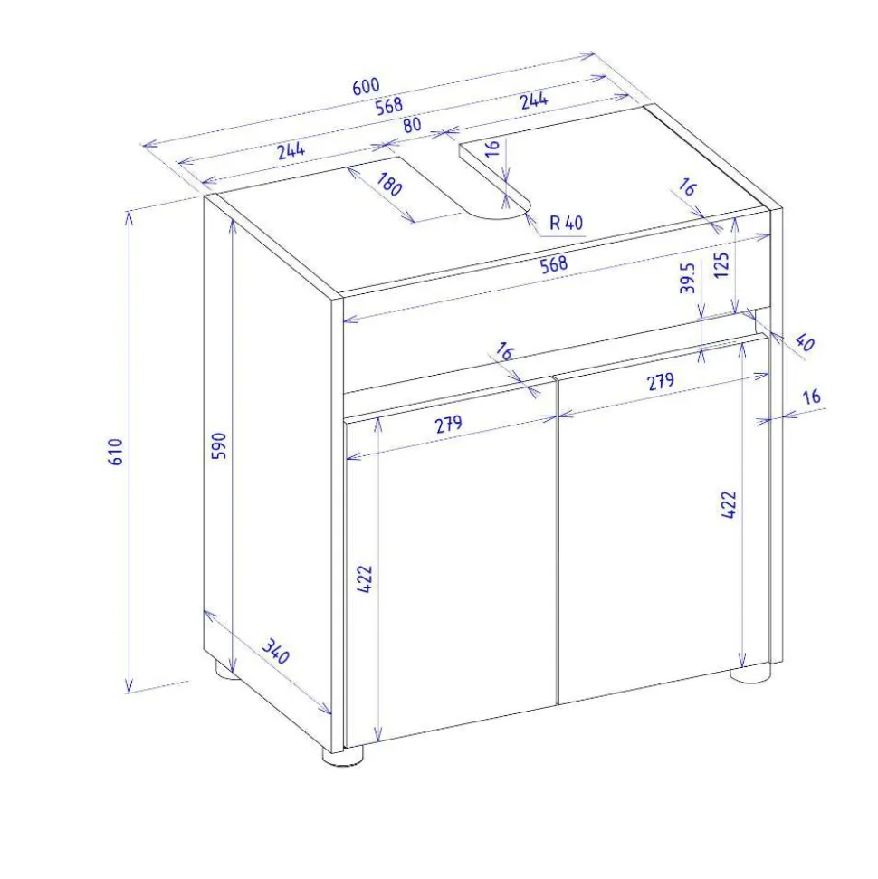 - Innen ein großes Staufach, vorgefertigter Siphon Ausschnitt in der Deckplatte