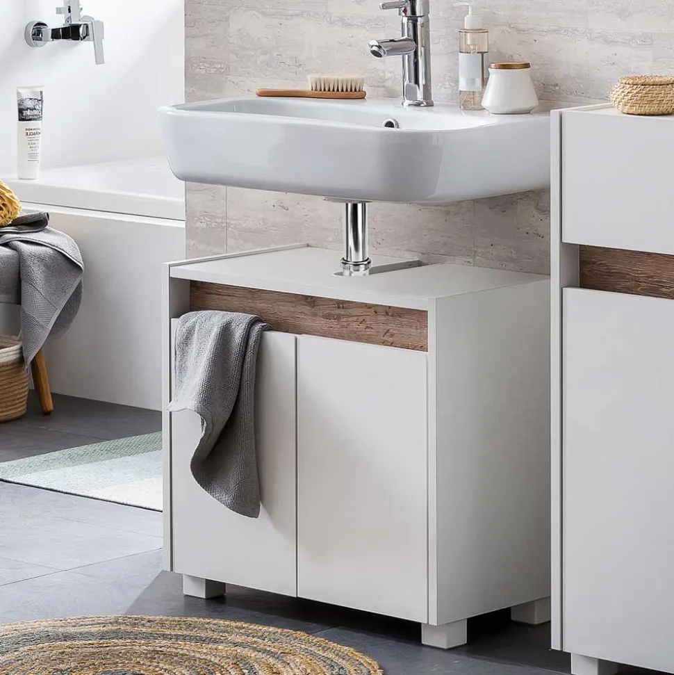 - Attraktiver Unterbeckenschrank in Weiß und Wildeichefarben