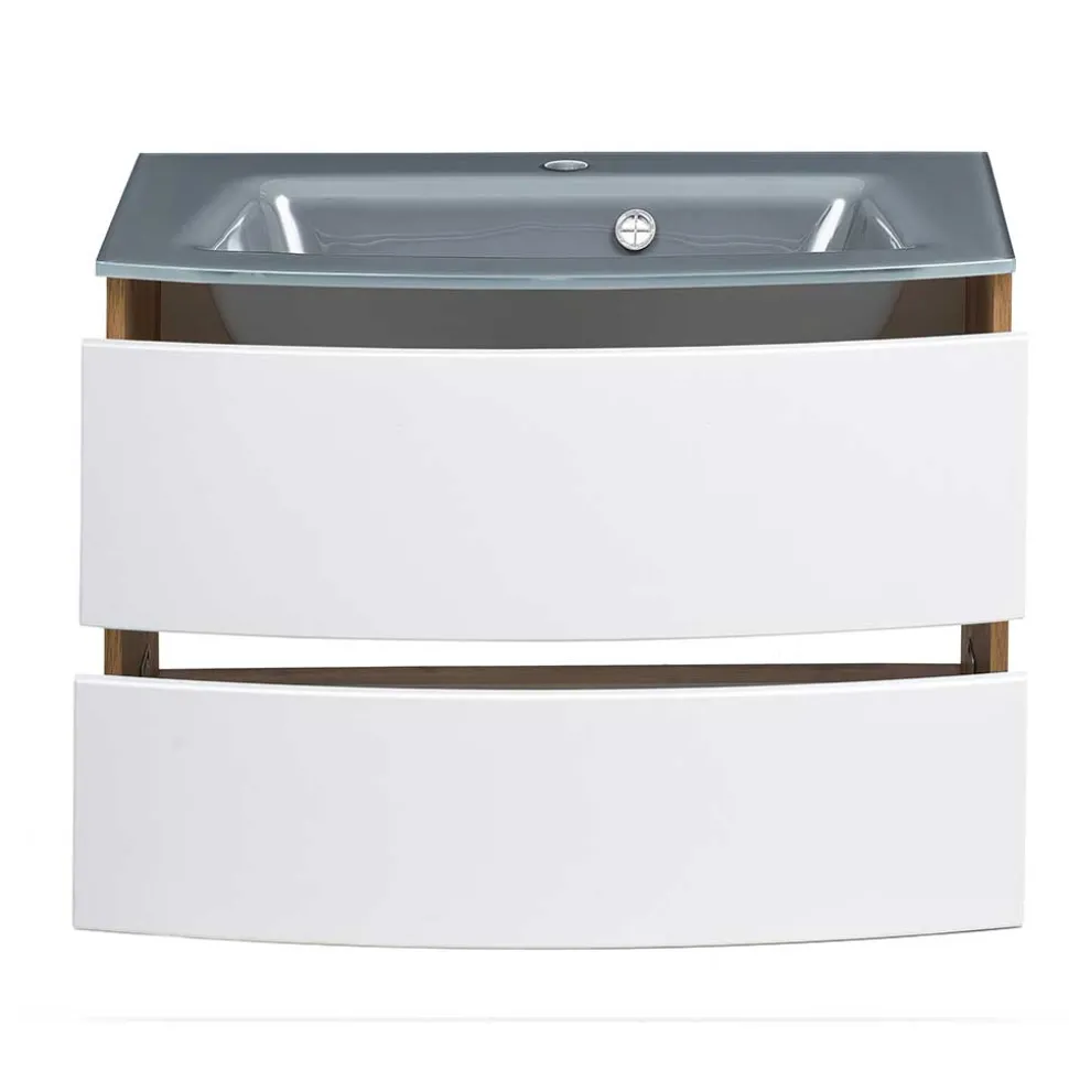 Ein Blickfang der Extraklasse: Das im Lieferumfang enthaltene gebogene Glasbecken in edlem Grau fügt sich nahtlos in das Gesamtbild ein. Mit seinen Innenmaßen von 65 x 10 x 30,5 cm (BxHxT) bietet es ausreichend Platz für den täglichen Komfort. Das leicht geschwungene Design wirkt elegant und modern zugleich, während das hochwertige Sicherheitsglas nicht nur schön, sondern auch pflegeleicht und widerstandsfähig ist. Bitte beachten Sie: Armaturen sind nicht im Lieferumfang enthalten, damit Sie die Möglichkeit haben, Ihren Waschtisch individuell mit Ihrer Wunscharmatur zu gestalten.
