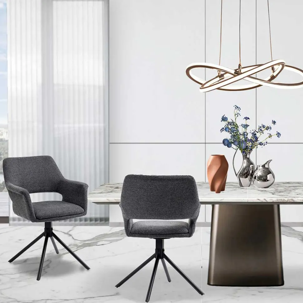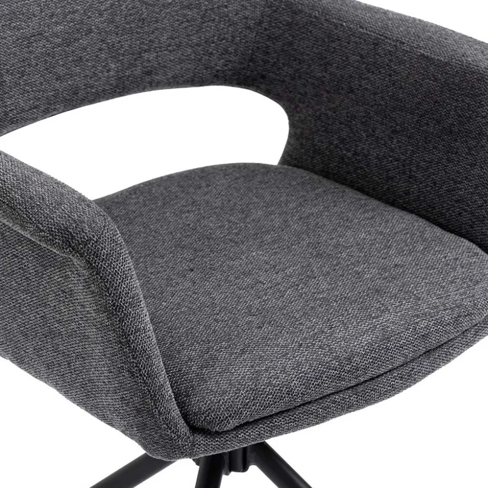 Für maximale Bewegungsfreiheit sorgt das schwarze, zierliche Stativgestell aus robustem Metall, das sich um 360° drehen lässt. So bleiben Sie flexibel am Tisch, ohne aufstehen zu müssen – perfekt für dynamische Gesprächsrunden oder lange Abende in geselliger Runde. Das filigrane Metallgestell unterstreicht dabei die moderne Linienführung des Sessels und sorgt gleichzeitig für Stabilität bis zu einer Belastung von 110 kg.
