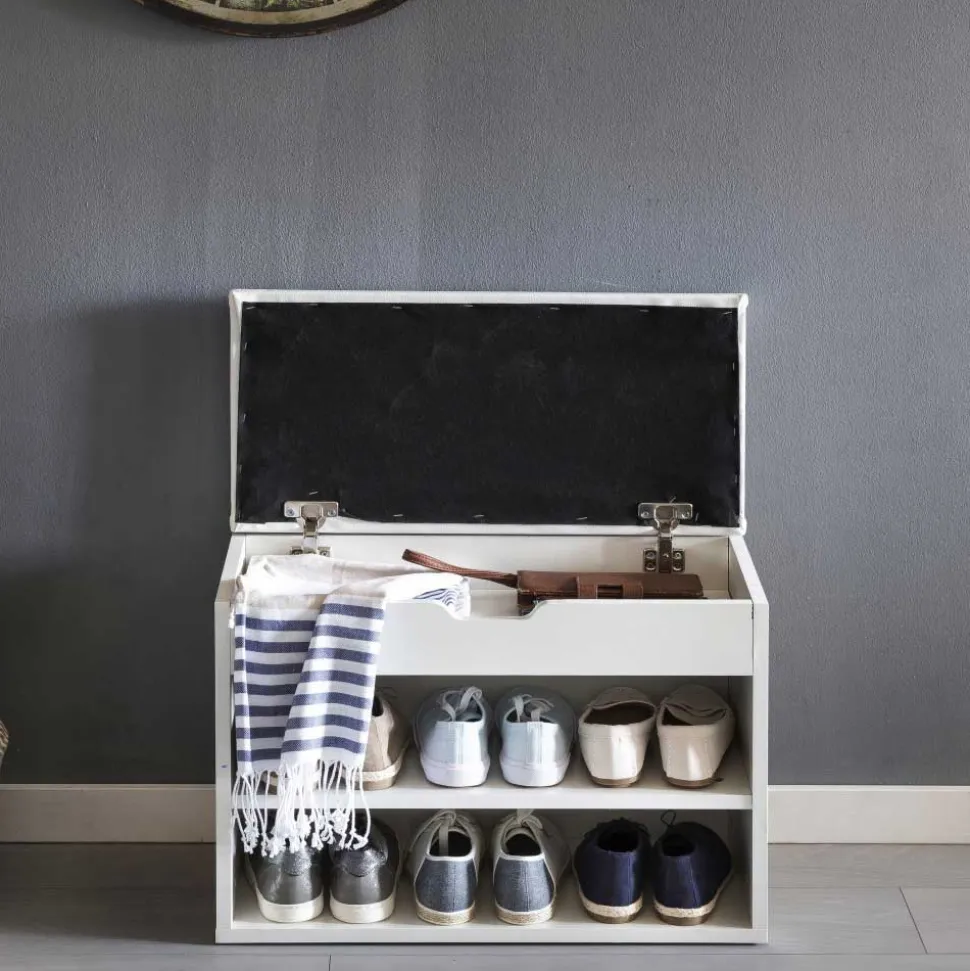 - Zwei offene Fächer bieten viel Platz für Schuhe