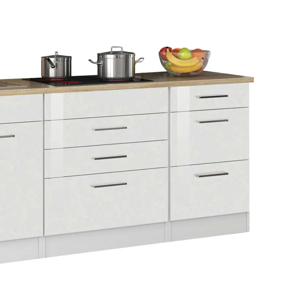 - Praktische Küchenzeile in Weiß Hochglanz und Sonoma Eiche