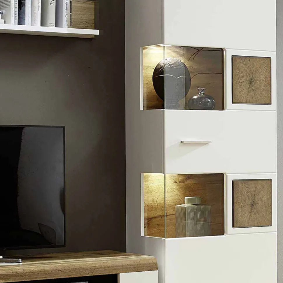 - Schicke Wohnkombination in Weiß matt und Eichefarben