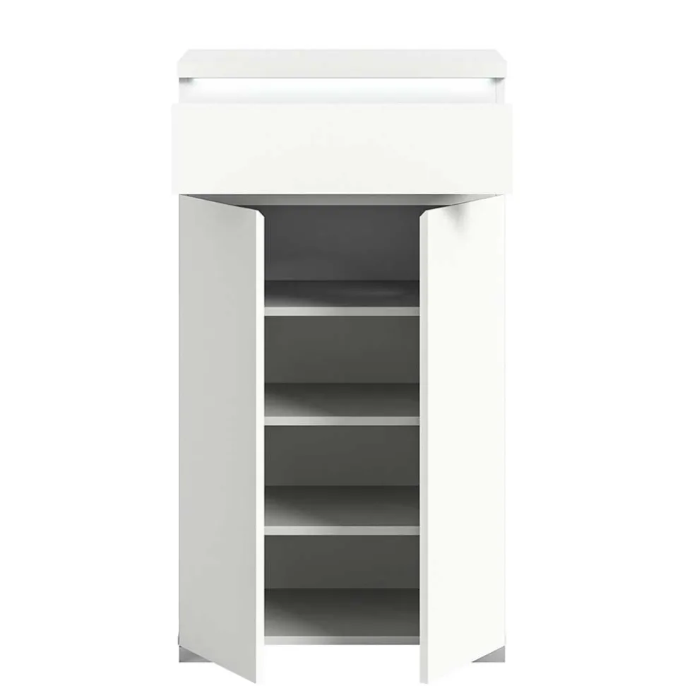 Erhöhen Sie die Funktionalität dieses Möbelstücks durch eine optionale, energiesparende LED-Beleuchtung unterhalb der Deckplatte. Diese Beleuchtung sorgt nicht nur für ein angenehmes Ambiente, sondern macht auch das Finden des richtigen Paares Schuhe im Dunkeln zum Kinderspiel.