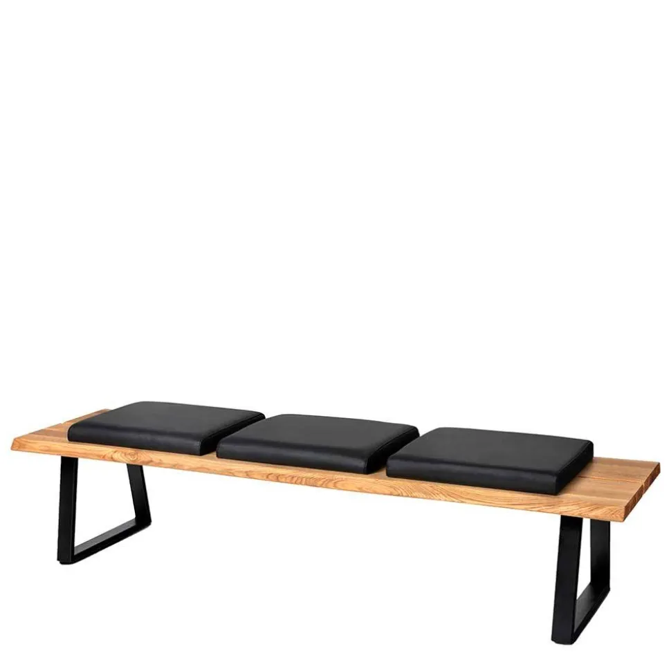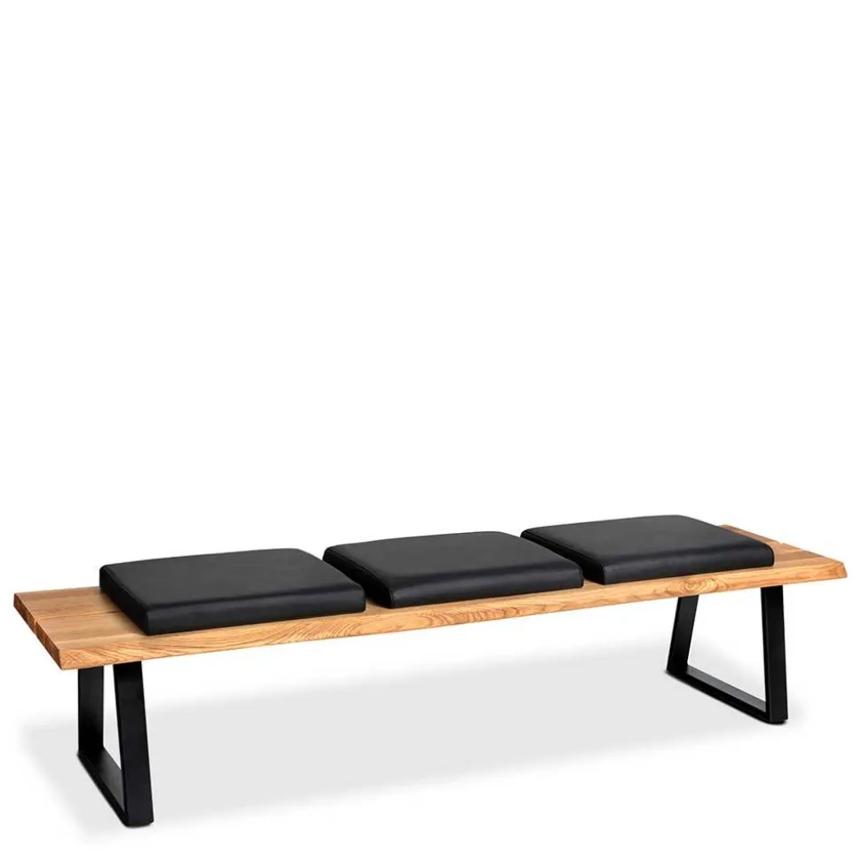 Die „Jessmine“ Bank besticht nicht nur durch ihr stilvolles Äußeres, sondern auch durch die Verwendung erstklassiger Materialien. Das Massivholz aus Wildeiche präsentiert sich mit einer einzigartigen Baumkante, die die Individualität jedes Stücks unterstreicht. Die Sitzfläche ist mit einer komfortablen Schaumstoffpolsterung versehen und verfügt über einen Bezug aus hochwertigem, schwarzem Echtleder. Die Kombination aus Holz und Leder sorgt für ein luxuriöses Sitzgefühl, während das robuste Metallbügelgestell in Trapezform Stabilität und Langlebigkeit garantiert.
