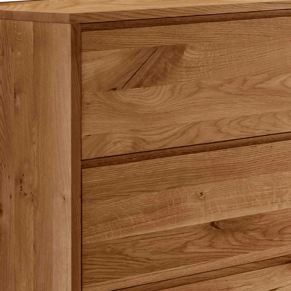 Hergestellt aus massiver Wildeiche, steht die Kommode „Cancun“ nicht nur für außergewöhnliche Haltbarkeit und Strapazierfähigkeit, sondern verkörpert auch eine tiefe Verbundenheit mit der Natur. Die Wildeiche ist bekannt für ihre beeindruckende Härte und Widerstandsfähigkeit, was sie zum idealen Material für hochwertige Möbelstücke macht. Natürliche Wuchsrisse und Astlöcher machen jede Kommode zu einem unverwechselbaren Unikat. Diese charakteristischen Merkmale betonen die authentische Schönheit und den individuellen Charakter des Holzes.