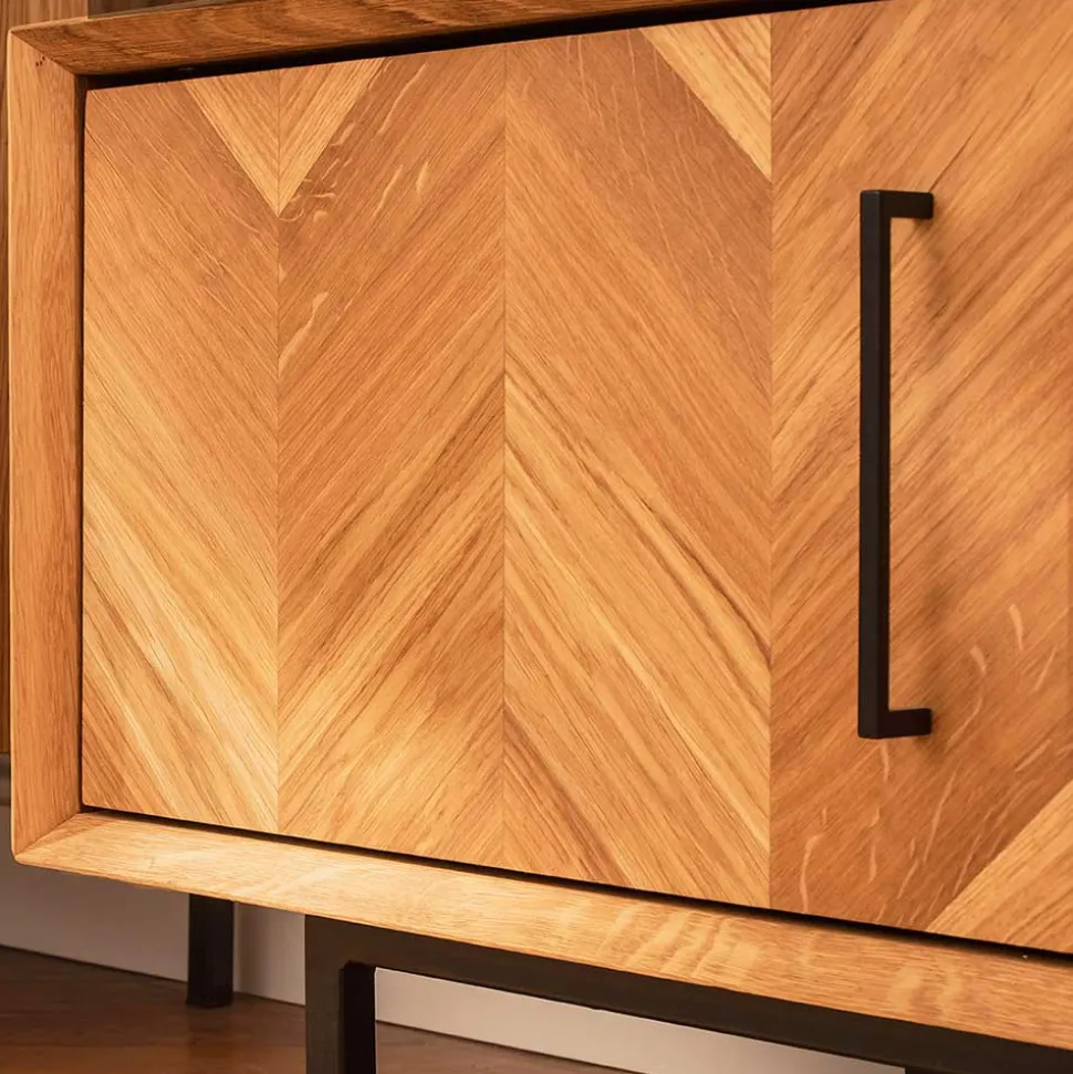 Das TV-Lowboard „Kerfa“ besticht nicht nur durch sein modernes Erscheinungsbild, sondern auch durch seine hervorragende Verarbeitungs- und Materialqualität. Gefertigt aus massiver Wildeiche und Stahl, garantiert es Ihnen Langlebigkeit und Stabilität. Die Holzoberflächen sind natürlich geölt und präsentieren sich mit durchgehenden Lamellen, die einen einzigartigen Charakter verleihen. Mit einer Materialstärke von ca. 2 cm ist das Lowboard robust und widerstandsfähig.